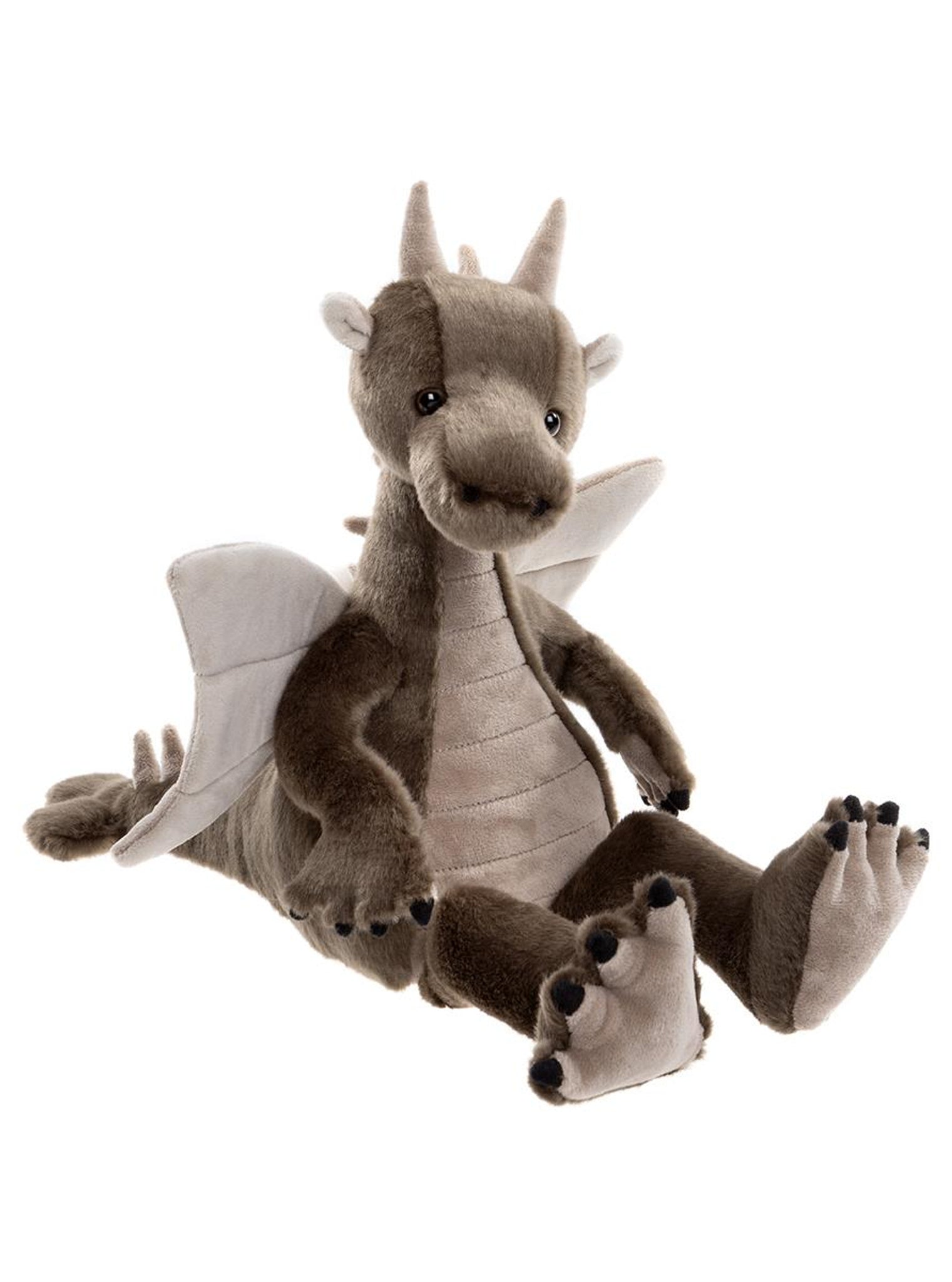 Meet Clubs, a delightful non-jointed and machine washable dragon from the 2025 Bearhouse collection by Charlie Bears. This lovable companion is crafted from soft brown and grey plush and has a plump, huggable body that's perfect for cuddles. The dragon's distinctive design includes adorable horns, detailed spinal ridges along its back and beautiful wings that add to its magical appeal. Be sure to look out for Clubs friends – Hearts, Diamonds, Spades and Deck! Suitable for ages 18 months+. Dragon height: 28cm/11"/9.3 Bear Paws.